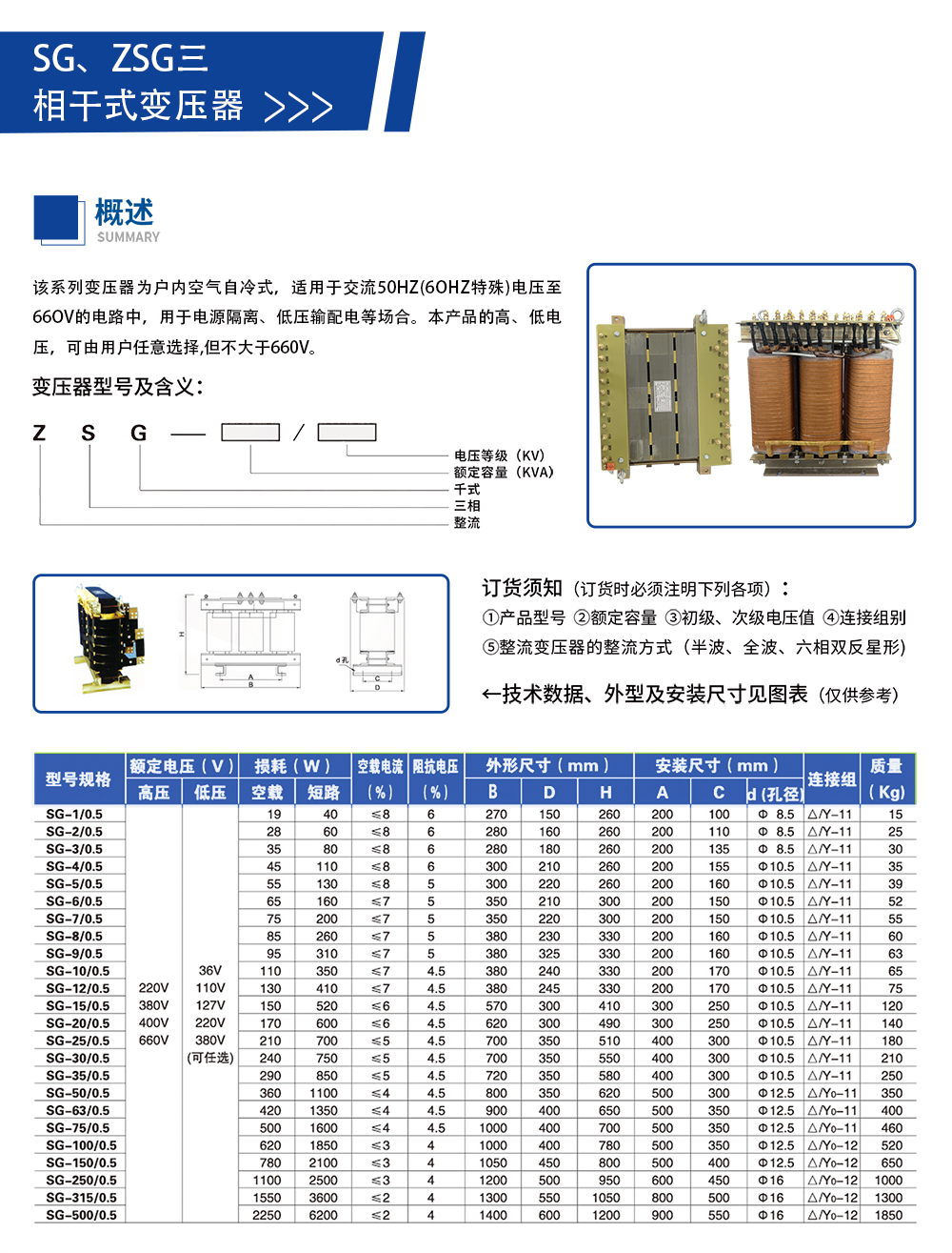 該系列變壓器為戶內(nèi)空氣自冷式,適用于交流50HZ(6OHZ特殊)電壓至66OV的電路中,用于電源隔離、低壓輸配電等場合。本產(chǎn)品的高、低電壓,可由用戶任意選擇,但不大于660V。